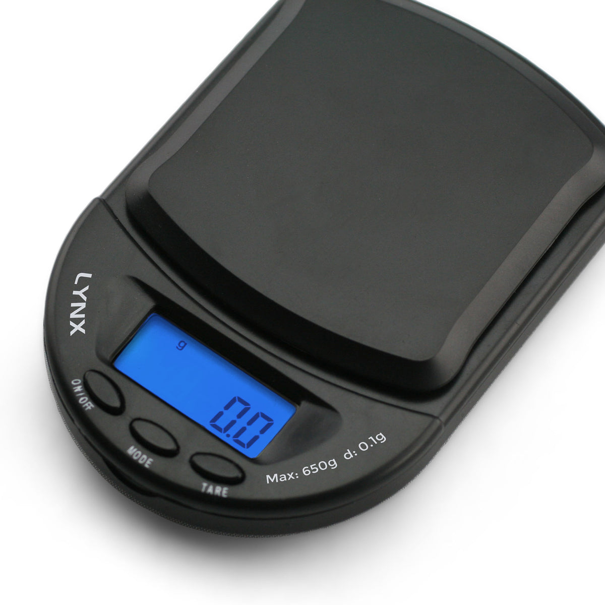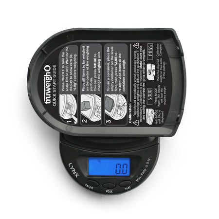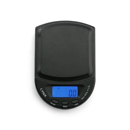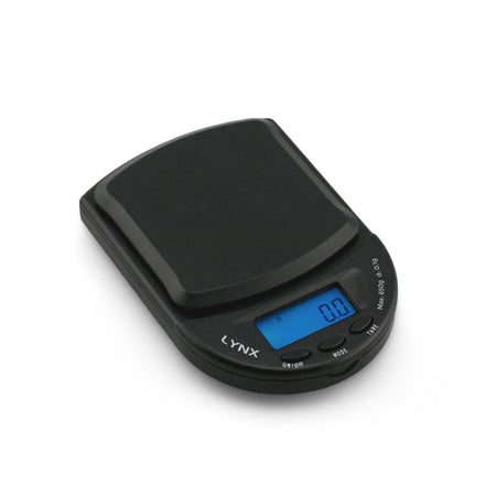 The LYNX digital mini scale has a super compact design that fits nicely in a pocket, backpack or handbag. The hard plastic cover keeps the it's precision weighing sensor protected while not in use, and doubles as an expansion tray. Results are easy to read on the blue back-lit LCD screen in any lighting condition. This scale is ideal for arts and crafts, hobbies, cash and carry stores, headshops, and numismatic purposes.